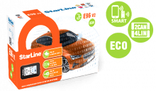 Starline E96 v2 BT 2CAN+2LIN ECO - Надежный автомобильный охранно-телематический комплекс с интеллектуальным автозапуском, несканируемым диалоговым кодомуправления, возможностью авторизации по технологии Bluetooth Smart, интегрированным 2CAN+2LIN Pin-Up ударопрочным брелком управления, помехозащищенным трансивером с малошумящим усилителем.