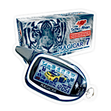 Сигнализация Scher-Khan Magicar 7 - сигнализация с автозапуском. Шерхан Магикар 7 можно запрограммировать на запуск по температуре салона, по внутреннему таймеру, по напряжению аккумлятора. В составе сигнализации два брелока - с жк Pin-Up (с обратной связью) и второй - дополнительный брелок.